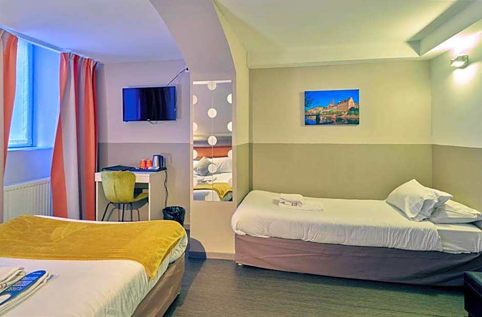 This double room is located in the attic and features a soundproofing and satellite TV.